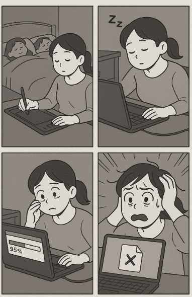 밤새 렌더 돌려놓고 잠깐 눈 좀 붙였는데, 새벽에 컴퓨터가 퍽…